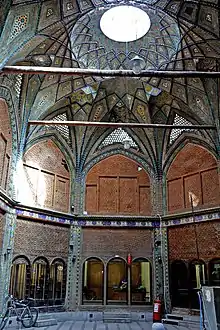 El gran bazar está conectado con el antiguo mercado por un lado y con el meydan del otro. En el lado que se abre al meydan, su alta bóveda de aristas salientes encierra una estructura de varios pisos, en la que la parte superior estaba reservada para la orquesta del sha mientras que por debajo estaban las tiendas y las habitaciones, dispuestas según los oficios. Una decoración de mosaicos de cerámica refleja el interés que tenía el shah en la arquitectura civil tanto como en la arquitectura religiosa o de placer.