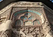 Fachada decorada de ladrillos y tejas de la tumba de Izz al-Din Kayka'us I en Sivas (1217-1218)