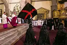 Cuando inicia el canto del himno del "Vexilla Regis”, el arzobispo toca y bate la bandera el altar para captar el espíritu y los méritos de Cristo muerto y resucitado. De esta manera se acerca a los canónigos postrados sobre los cojines y bate la bandera sobre ellos.