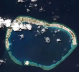 En 2014, comenzó la expansión de la isla en el interior de los bordes.[2] Filipinas presentó una protesta diplomática contra China tras el descubrimiento de sus actividades de creación de tierras ganadas al mar.[3] En enero de 2016, los trabajos estaban muy avanzados para desarrollar una base militar con un gran puerto y una pista de aterrizaje de 2.644 metros (8.675 pies), y el terreno creado artificialmente abarcaba 558 hectáreas (5,58 kilómetros cuadrados, un área aproximada del doble de Mónaco)[4] El 13 de julio de 2016, un avión de pasajeros de China Southern Airlines realizó un vuelo civil de prueba a la pista.[5]