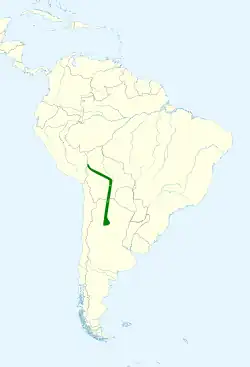 Esta especie habita en el estrato bajo y en el suelo[4] en bosques pedemontanos y selvas de montaña o yungas del centro y sur de Bolivia[3] y en el noroeste de la Argentina, en las provincias de: Jujuy, Salta, Tucumán, oeste de Santiago del Estero, Catamarca y La Rioja.[5]