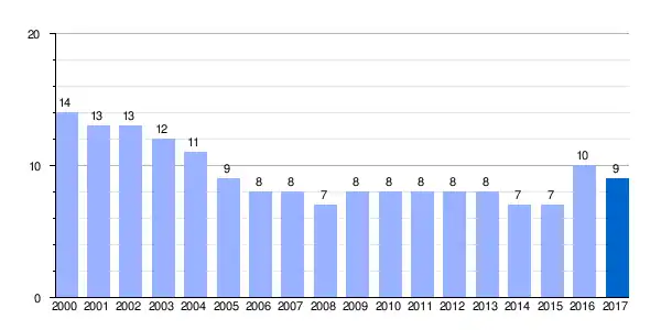| Gráfica de evolución demográfica de Arriano[3] entre 2000 y 2017 |
