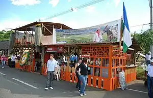 Arrieros mulas y fondas es atendido por personal de cada pueblo, que viene a la Feria de las flores decidido a mostrar con toda su amabilidad lo más granado de su cultura, sus mejores costumbres y sus gentes. Es una exposición imposible de pasar por alto con la familia. Durante ella se puede comer, beber, y hasta bailar.