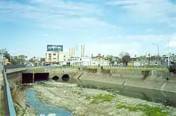 Durante un tramo de 1,5 km ―al atravesar la región norte de la ciudad de Rosario― el arroyo se encuentra entubado. El entubamiento tiene una sección de 74 m² (9,7 m de diámetro) y finaliza en el Parque Alem (en el barrio Arroyito).