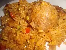 El arroz con albóndigas (en valenciano Arròs amb pilotes) es una preparación de arroz y acompañada de albóndigas que es típica de la provincia de Castellón.[1] Las preparaciones de arroz suelen diferir en distintas partes de la Comunidad Valenciana,[2] pueden ir desde la preparación de un guiso de arroz con diversos ingredientes hasta la combinación de las albódigas con una paella.