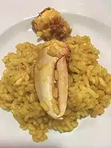 El arroz ideal para este plato es el de la variedad "bomba" (Excepto si se hace caldoso[1]), que requiere una mayor cantidad de agua y un mayor tiempo de cocción, con lo que el grano se hincha más y se le impregnan más los otros sabores. Al igual que la paella, se cocina en el recipiente también llamado paella o paellera, o, si es caldoso, en cazuela de barro o con un recipiente tratado en su superficie con teflón.