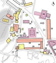 El edificio estaba alineado con un camino pavimentado que discurría desde el Pnyx hasta la ladera norte del Kolonos Agoraios, donde estaba unido a la Vía sagrada por una escalera.[4] El arsenal no era accesible desde el Ágora.[3]