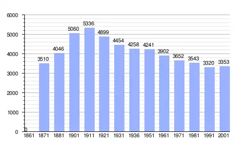 | Gráfica de evolución demográfica de Arsiero entre 1861 y 2001 |