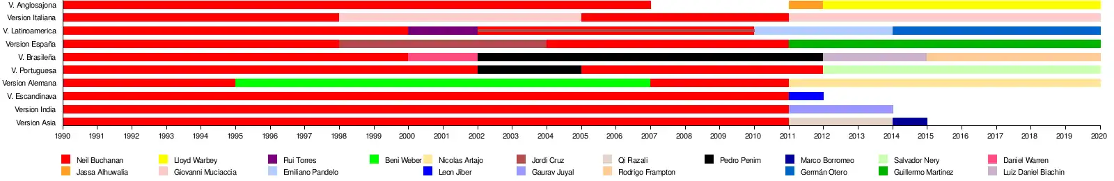 Nota: Neil Buchanan fungió como presentador para todo el mundo doblado a sus respectivos idiomas, hasta que cada región comenzó las grabaciónes con sus presentadores.
