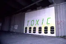 El arte medioambiental también abarca el ámbito del paisaje urbano. La artista medioambiental pionera, Mary Miss comenzó a crear arte en el entorno urbano con su instalación de 1969, Ropes/Shore, y continúa desarrollando proyectos que implican a comunidades extendidas a través de City as a Living Laboratory.[4] Agnes Denes creó una obra en el centro de Manhattan Wheatfield - A Confrontation (1982) en la que plantó un campo de trigo en el terreno de dos acres de un vertedero cubierto de detritus y escombros urbanos. El lugar es ahora Battery Park City y el World Financial Center, una transformación del poder ecológico al poder económico.
