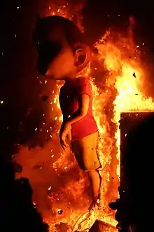 La pirotecnia es el «arte del fuego» (del griego πυρός, «fuego», y τέχνη, «arte»), realizado mediante la obtención y dominio del fuego con procesos químicos («fuegos artificiales»). Utilizada tanto en el terreno civil como el militar, hoy día la pirotecnia se asocia generalmente con celebraciones y actos festivos, donde el fuego es un medio de expresión que manifiesta —como la pintura— unos valores cromáticos, desarrollado en el espacio adquiriendo un carácter tridimensional —como la escultura—. El espectáculo pirotécnico presenta múltiples variantes sensitivas, desde las visuales hasta las auditivas y olfativas, al tiempo que su carácter temporal lo convierte en un evento de marcada efimeridad.[38]