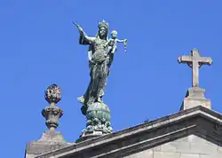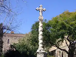 Por lo que se refiere a estatuaria en edificios públicos, conviene destacar el conjunto del Hospital de la Santa Cruz, en cuyo patio figura una cruz situada sobre una columna salomónica, obra de Bernat Vilar de 1691 —destruida durante la Guerra Civil, la actual es de 1939—; en el mismo patio se encuentran las figuras de San Roque y la Caridad, fechables alrededor de 1638, de artista desconocido; por otro lado, en el patio de la Casa de Convalecencia del mismo hospital se halla una estatua de San Pablo, obra de Lluís Bonifaç el Viejo de 1679; por último, en una hornacina en la esquina de la calle Carmen con Egipcíacas se ubica otro San Pablo, obra de Domènec Rovira el Joven de 1668.[16]