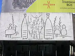 En este período Barcelona pasó a formar parte del nuevo reino de España surgido de la unión de las coronas de Castilla y Aragón. En general, fue una época de una cierta decadencia económica y cultural, acentuada por conflictos sociales y bélicos como la Guerra dels Segadors y la Guerra de Sucesión. La ciudad seguía encorsetada en sus murallas —la única ampliación fue en la playa, el barrio de la Barceloneta—, pese a que al final del período tenía casi 100 000 habitantes. Artísticamente fue la época del Renacimiento y el Barroco, estilos en los que se construyeron numerosos palacios e iglesias.[13]