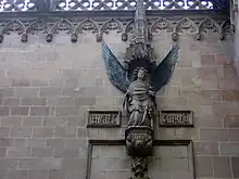 Cabe reseñar que anteriormente ya se había efectuado un monumento a santa Eulalia, elaborado en 1618 y situado en la plaza del Blat —actualmente del Ángel—. Fue diseñado por Rafael Plansó, y consistía en un obelisco sobre el que se situaba la figura de un ángel, que señalaba con el dedo el lugar donde —según la tradición— un ángel se había aparecido a la comitiva que trasladaba los restos de la santa a la Catedral de Barcelona. La figura del Ángel fue elaborada por el platero Felip Ros. En 1821 el obelisco fue retirado porque dificultaba la circulación, y el Ángel fue colocado en una hornacina. En 1966 fue sustituido por una copia y trasladado al Museo de Historia de Barcelona.[19]