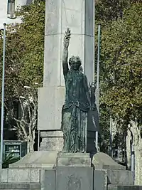 Otros monumentos realizados en los años 1920 fueron: Al Doctor Andreu (1927), en honor al farmacéutico Salvador Andreu, promotor de la urbanización del Tibidabo, del que se confeccionó un primer monumento con la efigie del homenajeado, obra de Enric Sagnier y Eusebi Arnau, que fue destruido durante la Guerra Civil, y sustituido en 1952 por una estatua de mujer vestida con túnica clásica y portando en la mano un ramo de laurel, elaborada por Maria Llimona;[58] A Pearson (1928), un monumento en forma de alegoría de la Victoria dedicado al ingeniero estadounidense Fred Stark Pearson, impulsor de la industria eléctrica en Cataluña, obra de Josep Viladomat situada en la plaza de Pedralbes;[59] Al aviador Durán (1928), del escultor Jaume Duran, en memoria del teniente de navío Juan Manuel Durán, piloto del Plus Ultra, el primer avión en realizar un vuelo transatlántico sin escalas, y fallecido en accidente aéreo en la montaña de Montjuïc, donde se ubicó su monumento, en forma de Victoria alada;[60] y la Fuente de la Aurora (1929), obra de Joan Borrell situada inicialmente en los Jardinets de Gràcia y disgregada posteriormente en diversas piezas repartidas por varios lugares: la Cuadriga de Helios en el Turó Park, Selene en la avenida de Vallcarca, Minerva en Montjuïc, una Ninfa que se peina en la plaza Joaquim Folguera, y las águilas en el Zoo.[61]