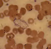 Objeto brillante no proveniente de la muestra sanguínea: un artefacto microscópico.