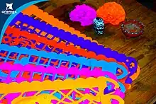 Hay artesanías relacionadas con la decoración ancestral como la de la tradicional ofrenda de día de muertos, elaboradas con técnicas ancestrales y que han sobrevivido al paso del tiempo de generación en generación. San Salvador Huixcolotla es el lugar que mundialmente se le conoce como cuna del papel picado y que en 1992 fue declarado como patrimonio del estado de Puebla. El papel picado que conserva la tradición milenaria del calado a mano lo encuentras en Artemex papel picado, una empresa que rescata los valores de esta artesanía y que contribuye a la economía familiar de los artesanos de San Salvador Huixcolotla, en donde calidad y dedicación se conjugan para resaltar las bellezas mexicanas y que además te permite personalizar en colores, diseños, nombres, fechas y mucho más, en esta casa artesanal podrás conocer la técnica del pintado de papel china, disfrutar de obras de arte realizadas en el papel picado y disfrutar de antojitos típicos de la región que a solo unos metros podrás degustar en su mercado municipal.[10]