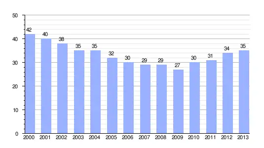 | Gráfica de evolución demográfica de Arteta entre 2000 y 2013 |