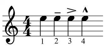 ![]() | Acento | La nota se ejecuta más fuerte que cualquier nota sin acentuar. | |