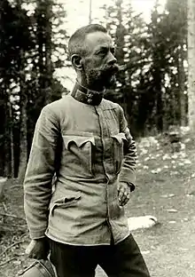 En octubre de 1917, estaba inspeccionando las trincheras de la línea de frente cuando un proyectil de artillería italiano alcanzó su posición, matándolo. A instancias personales del anterior Jefe de Estado Mayor General, Franz Conrad von Hötzendorf, su cuerpo fue devuelto a su familia en Viena.[1][2][4] Se construyó un memorial por él cerca del lugar donde murió.[5]