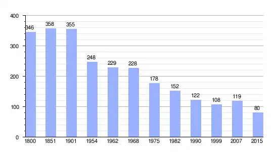 Los datos demográficos contemplados en este gráfico de la comuna de Arville[4] se han cogido de 1800 a 1999 de la página francesa EHESS/Cassini, y los demás datos de la página del INSEE.[5]