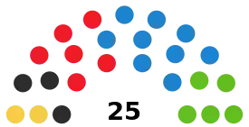 Gobierno (9) 9 PP de Ceuta Oposición (16) 6 PSOE-Ceuta 5 Vox 3 MDyC 2 Ceuta Ya | |