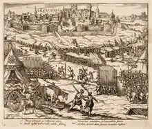 El asedio de Valenciennes de 1567, un grabado de Johann Wilhelm Baur (1630).