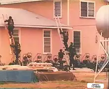 El 28 de febrero de 1993 a las 9:45 a.m., la Agencia de Alcohol, Tabaco, Armas de Fuego y Explosivos (ATF) intentó ejecutar una orden de allanamiento relacionada con presuntos cargos de abuso sexual y violaciones ilegales de armas.[25][26] La ATF intentó abrir una brecha en el complejo durante aproximadamente dos horas hasta que sus municiones se agotaron.[27][28] Cuatro agentes de la ATF (Steve Willis, Robert Williams, Todd McKeehan y Conway Charles LeBleu) fueron asesinados y otros 16 agentes resultaron heridos durante la redada. Los cinco Davidianos de la Rama muertos en la incursión de las 9:45 a. m. fueron Winston Blake (británico), Peter Gent (australiano), Peter Hipsman, Perry Jones y Jaydean Wendell; dos a manos de los propios Davidianos de la Rama.[29]