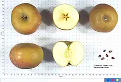 ![]() La variedad de manzana 'Ashmead's Kernel' con secciones cruzadas. | ||