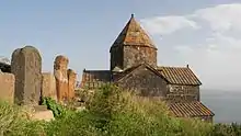 Since he died on the road, in an inn at a rocky place called K'arsparn, they carried away his body in a coffin and brought it to the town (awan) of Bagaran, the royal residence, where they covered the coffin with robes and veils interwoven and adorned with gold; and carefully selected detachments of military forces clad in arms and ornaments stood guard. The great katholikos, accompanied by the rest of the clerics of the church, also came forth and solemnly chanted psalms and raised the voice of [their] praise. His three sons, the senior [gaherec'] princes of the royal house and other friends followed the coffin, and thus they arrived at the cemetery....Then, building a tomb [suitable] for royalty, they buried him in the cemetery of his ancestors.[1]