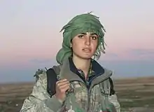 A finales de 2014[2] con 16 años de edad, se alista en las filas de la milicia popular de las Unidades Femeninas de Protección con objetivo de luchar contra el Estado Islámico. Siendo una de las muchas combatientes de mediana edad en la milicia kurda, esta se destaca antes los medios internacionales al ser bautizada «la Angelina Jolie kurda» por su parecido físico. Dichas comparaciones con la actriz estadounidense generaron repudio y rechazo de parte de sus compatriotas combatientes de las milicias y activistas de la causa kurda quienes calificaron las comparaciones como sexistas y una campaña de cosificación.