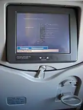 A los asientos les puede estar equipados con puertos de alimentación (ya sea EmPower, CA, CC o USB tomas de solo alimentación) para pequeños aparatos eléctricos y puertos para auricularess para el entretenimiento de audio. La mayoría de las aerolíneas de servicio completo también incluyen pantallas de video personales como parte del sistema entretenimiento a bordo en aviones de larga distancia, pero algunos aviones usan un sistema de traer su propio dispositivo donde los pasajeros usan sus propios dispositivos. Las pantallas suelen ser pantallas táctiles o pueden controlarse mediante dispositivos remotos. En Economy y Premium Economy, la pantalla normalmente está en el respaldo de un asiento, pero en un asiento de primera fila o en una cabina prémium, es posible que deban sacarse de un compartimento especial después del despegue y luego devolverse allí para aterrizar.