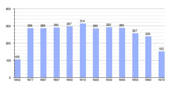 | Gráfica de evolución demográfica de Aso de Sobremonte[5] entre 1842 y 1970 |