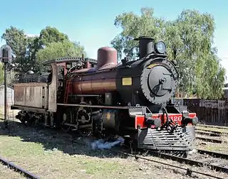Locomotora de la Asociación Uruguaya de Amigos del Riel ex ANP N.º 1 en el Día del Patrimonio del año 2003, preparándose para partir con un tren de pasajeros.