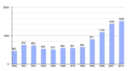 Los datos demográficos contemplados en este gráfico de la comuna de Aspach-le-Haut[4] se han cogido de 1800 a 1999 de la página francesa EHESS/Cassini, y los demás datos de la página del INSEE.[5]