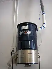 En los aspiradores de instalación fija central, el aire limpiado puede salir directamente al exterior sin necesidad de más filtración. Un sistema de filtración ciclónica bien diseñado sólo pierde potencia de succión debido a la restricción del flujo de aire cuando el recipiente de recogida está casi lleno. Esto contrasta con los sistemas de bolsas filtrantes, que pierden succión cuando los poros del filtro se obstruyen al recoger la suciedad y el polvo.