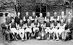 El Aston Villa Football Club es un club inglés que fue fundado en marzo de 1874, por miembros de la Cruz Villa Wesleyan Chapel en Handsworth, que en la actualidad forma parte de Birmingham. Los cuatro fundadores del Aston Villa fueron Jack Hughes, Frederick Matthews, Walter Precio y William Scattergood. Su primer encuentro fue ante un equipo local de rugby, el Aston Brook St Mary's Rugby, debido a la diferencia en las reglas y demás les impusieron como condición para el partido, disputar la primera mitad bajo las reglas de rugby y la segunda mitad bajo las reglas de fútbol. Después de varios encuentros, Villa se estableció muy pronto como uno de los mejores equipos de la región de Midlands, ganando su primer trofeo, el Birmingham Senior Cup, en 1880 bajo la capitanía del escocés George Ramsay. El club ganó su primera Copa en 1887, también en ese mismo año se convierte en el primer club del mundo en ganar una copa internacional al obtener la Football World Championship, todo eso teniendo como capitán a Archie Hunter que se convirtió en uno de los nombres históricos del club.