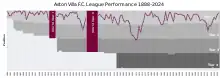 El Aston Villa Football Club es un club de fútbol del Reino Unido con sede en Birmingham (Inglaterra). Disputa la Premier League, máxima categoría del fútbol inglés, ininterrumpidamente desde 2019, si bien es uno de los equipos más representativos de la élite del país y es únicamente superado por el Everton Football Club en presencias en la máxima categoría,[4] y es uno de los miembros fundadores de la Football League en 1888 y de la Premier League en 1992.[5]