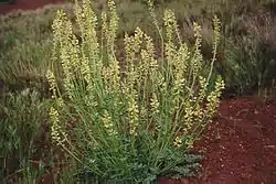 Esta es una hierba perennifolia que crece erecta hasta una altura máxima de cerca de medio metro. Produce alrededor de 45 flores en una inflorescencia erecta.[2] Es polinizada por las abejas.[1] Gran parte de las plantas se encuentran dentro de los límites del Parque nacional Zion y las tierras tribales de los Shivwits.[2] En otras partes de su hábitat se encuentran desprotegidas. Las amenazas a la especie incluyen la pérdida de hábitat por el desarrollo y la agricultura, por los conejos, el ganado de pastoreo, por los vehículos todoterreno, la explotación de canteras y la introducción de otras especies de plantas.[3][2]