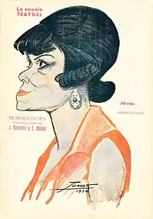 ![]() Caricaturizada por Tovar en la portada de un número de La Novela Teatral | ||