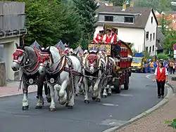 Para el arrastre de carruajes muy pesados, como por ejemplo, los de artillería de asedio, se hace uso en España de este atalaje.