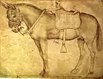 Las guarniciones del caballo mano no se diferencian de las de silla más que en la falta de estribos.