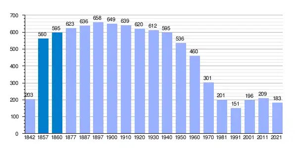 | Gráfica de evolución demográfica de Atapuerca[8] entre 1842 y 2021 |