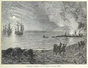 ![]() Grabado que representa el ataque español contra Penzance. | ||||