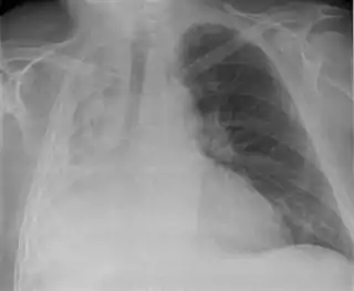 La atelectasia es la disminución del volumen pulmonar. Es causada por una obstrucción de las vías aéreas (bronquios o bronquiolos) o por presión en la parte externa del pulmón. Es el colapso de una parte o (con mucha menor frecuencia) de todo el pulmón. Es común después de cirugía o en pacientes que estuvieron hospitalizados. Se debe a la restricción de la vía aérea (atelectasia restrictiva) o a otras causas no restrictivas (atelectasia no restrictiva) como, por ejemplo, la ausencia de surfactante pulmonar, también llamada tensoactivo por su propiedad de impedir el colapso de los alvéolos durante la espiración[1]