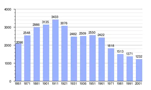 | Gráfica de evolución demográfica de Ateleta entre 1861 y 2001 |