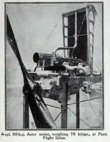 En el Salon de l'Auto de 1900 en París, Aster expuso un cuatriciclo equipado con su propio motor monocilíndrico de 3,5 CV. Los tamaños de motor y los motores de varios cilindros se desarrollaron progresivamente.[15]