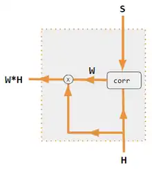 | corr | Softmax por columnas (matriz de todas las combinaciones de productos de puntos). Los productos por puntos son xi* xj en la variante #3, hi* sj en la variante 1, y column i ( Kw* H )* column j ( Qw* S ) en variante 2, y column i (Kw* X)* column j (Qw* X) en la variante 4. La variante 5 utiliza una capa totalmente conectada para determinar los coeficientes. Si la variante es QKV, los productos escalares se normalizan por el factor sqrt(d), donde d es la altura de las matrices QKV. |