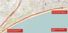 ![]() Trayectoria del vehículo atacante, hecha de oeste a este | ||