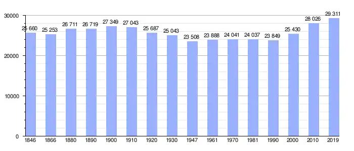 | Gráfica de evolución demográfica de Ath entre 1846 y 2019 |